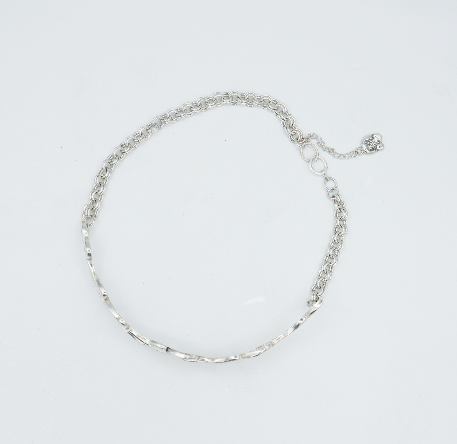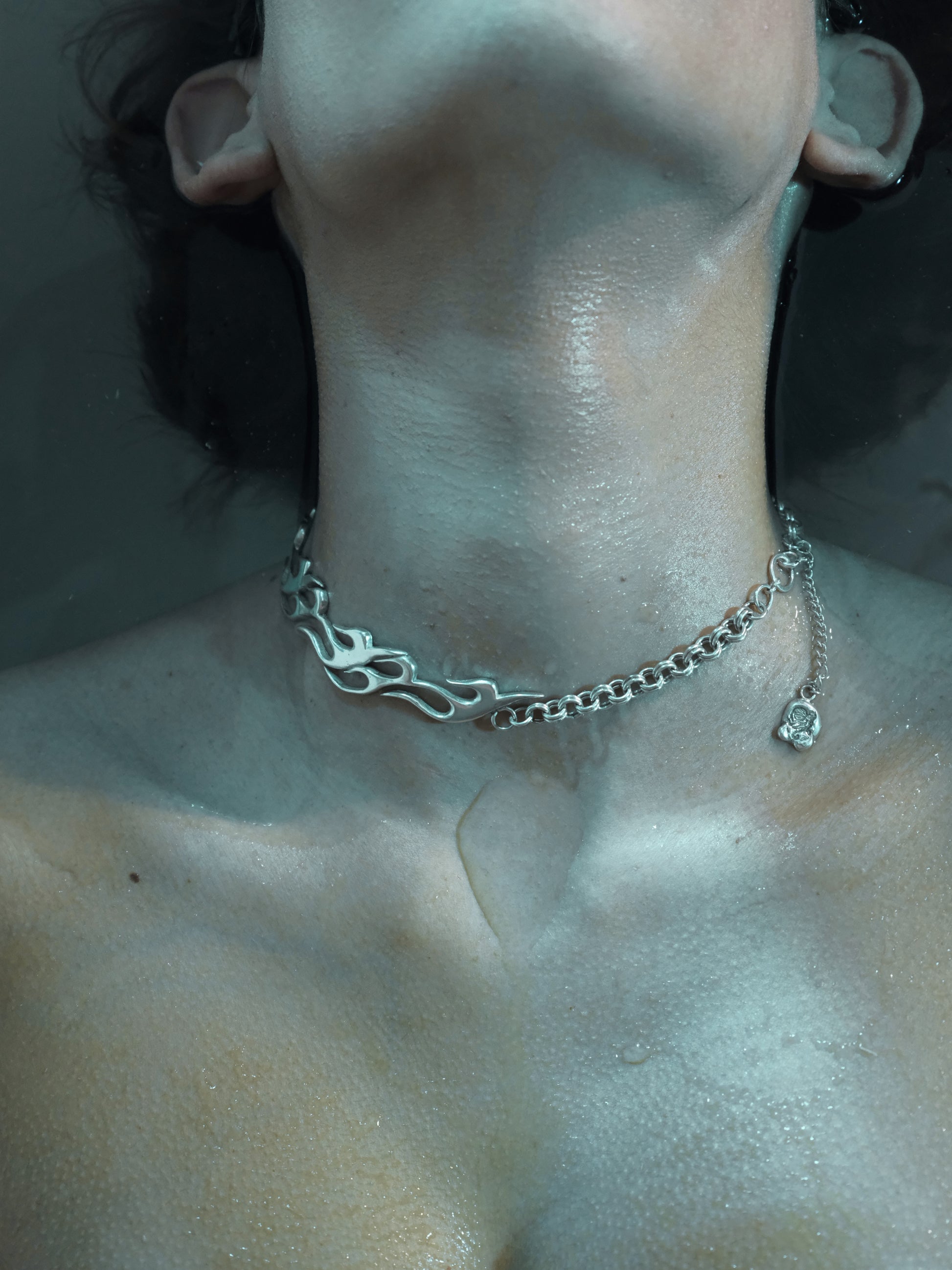 Collier en argent moitié chaine maille jaseron double moitié flammes