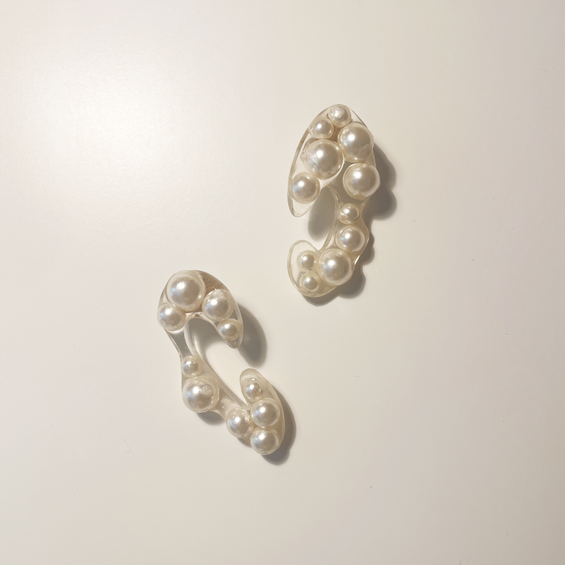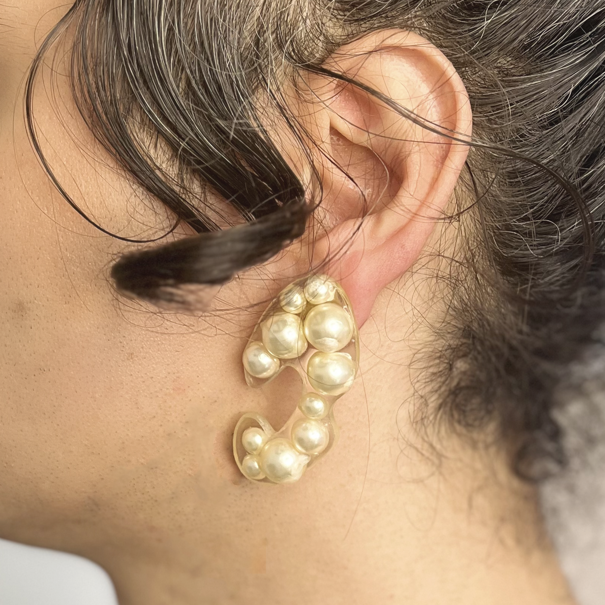 Perles synthétiques de différentes tailles emprisonnées dans une résine transparente