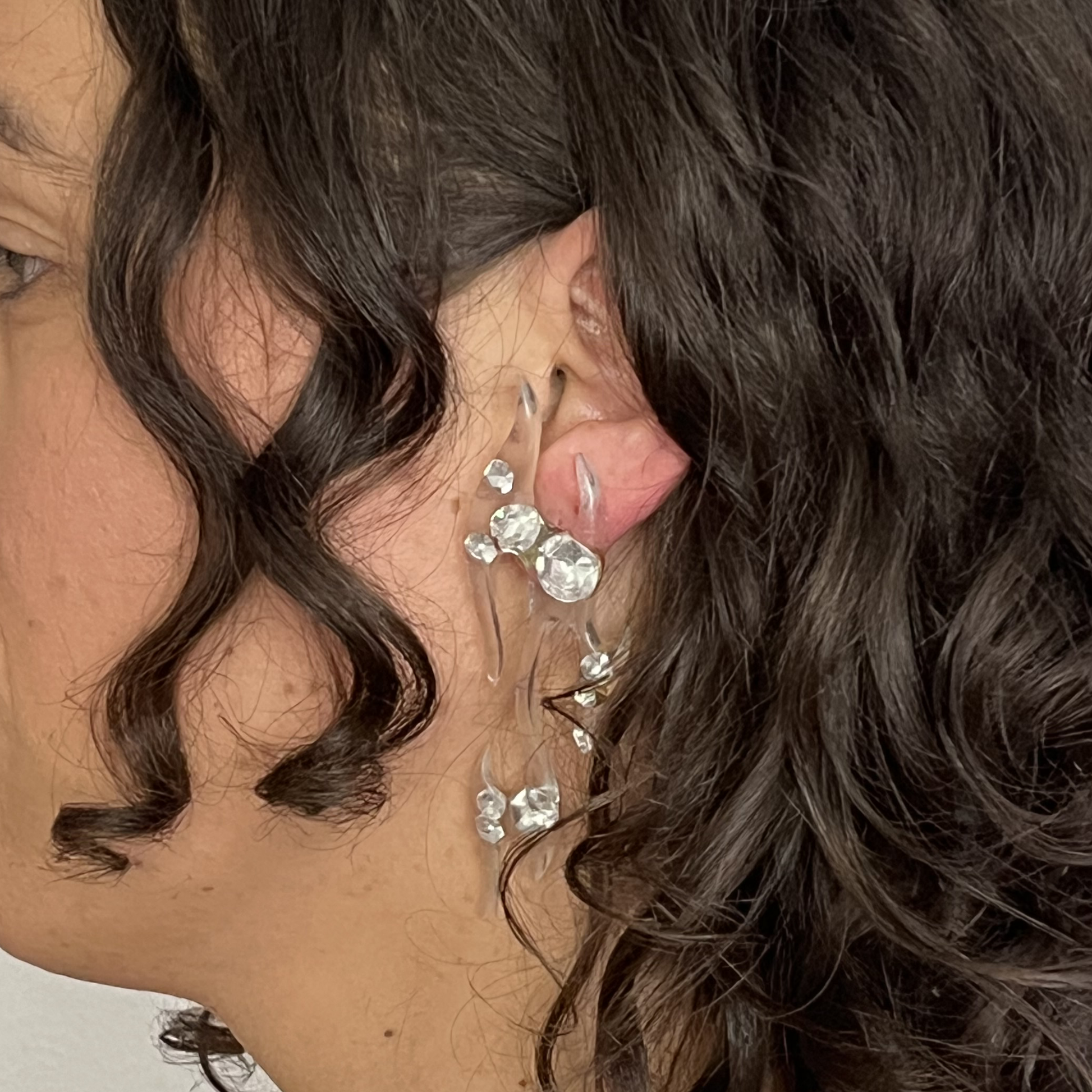 Paire de BO en forme de flamme, en résine sculptée à la main, attache en argent en forme de goutte.