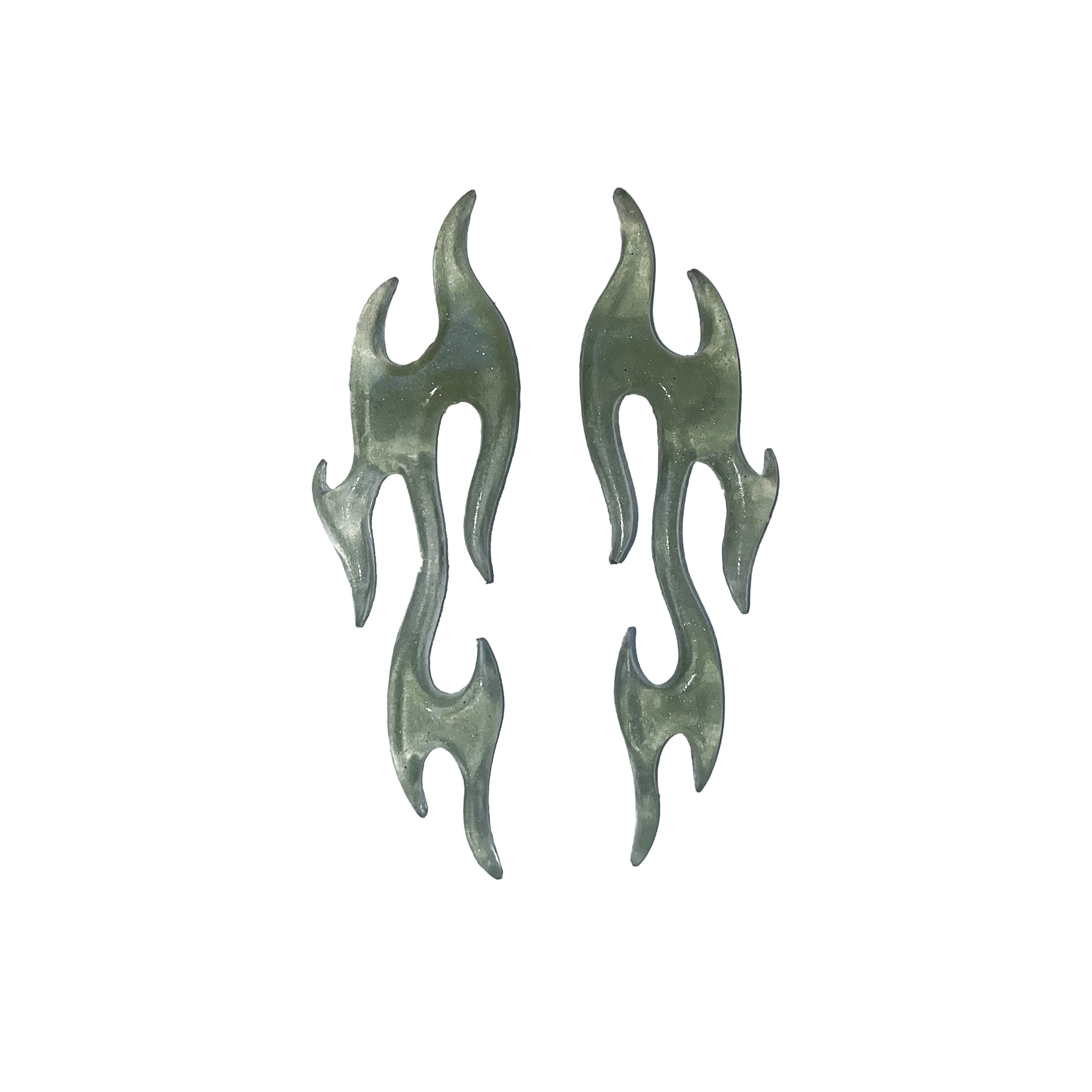 Paire de BO en forme de flamme, en résine sculptée à la main, attache en argent en forme de goutte.