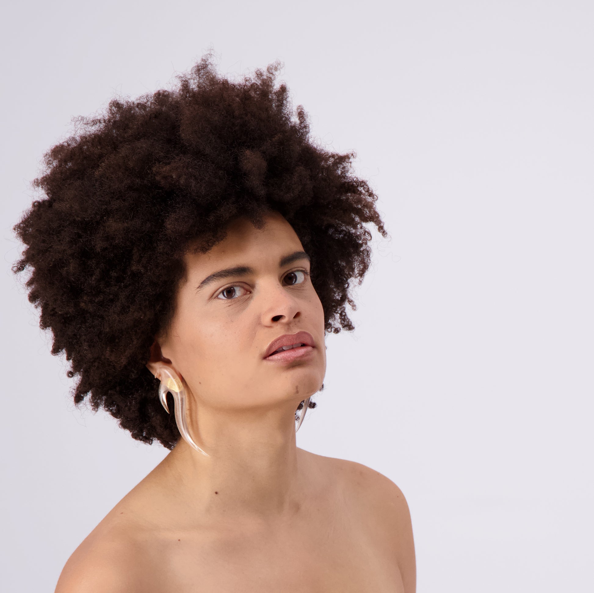 La forme originelle, qui épouse l'angle de la mâchoire et qui se love à la naissance du cou. Elégance pure.