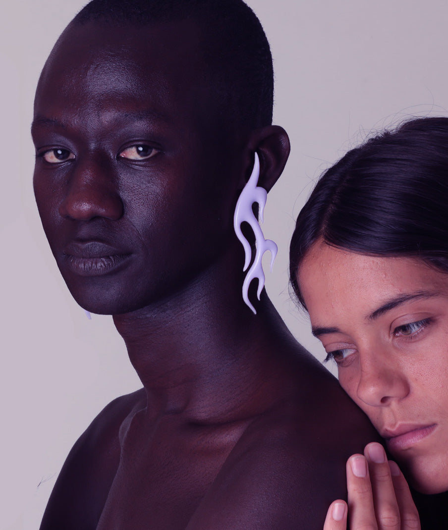 Boucles d'oreille en forme de flamme en résine sculptée à la main, attache en argent en forme de goutte