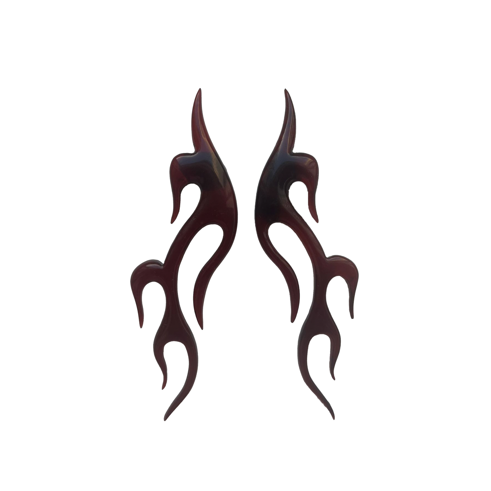 Boucles d'oreille en forme de flamme en résine sculptée à la main, attache en argent en forme de goutte