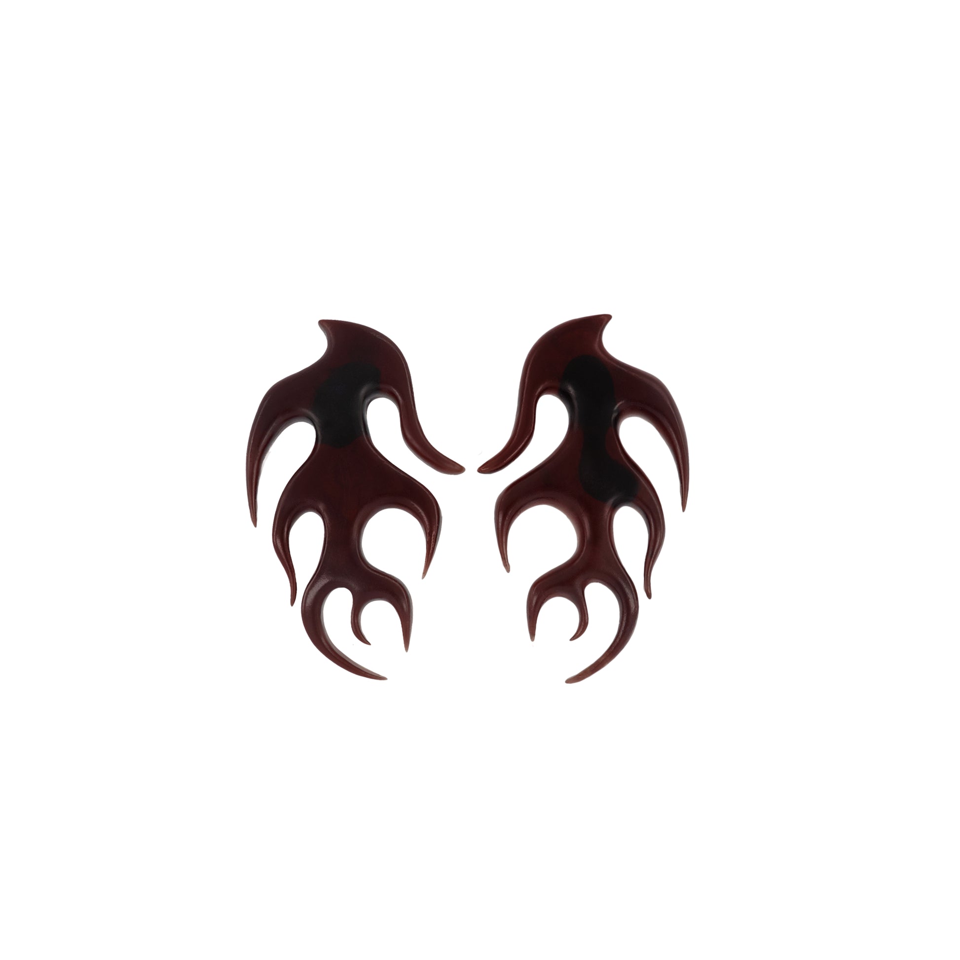 Boucles d'Oreille en forme de flammes, en résine sculptée à la main, attaches en argent en forme de goutte.