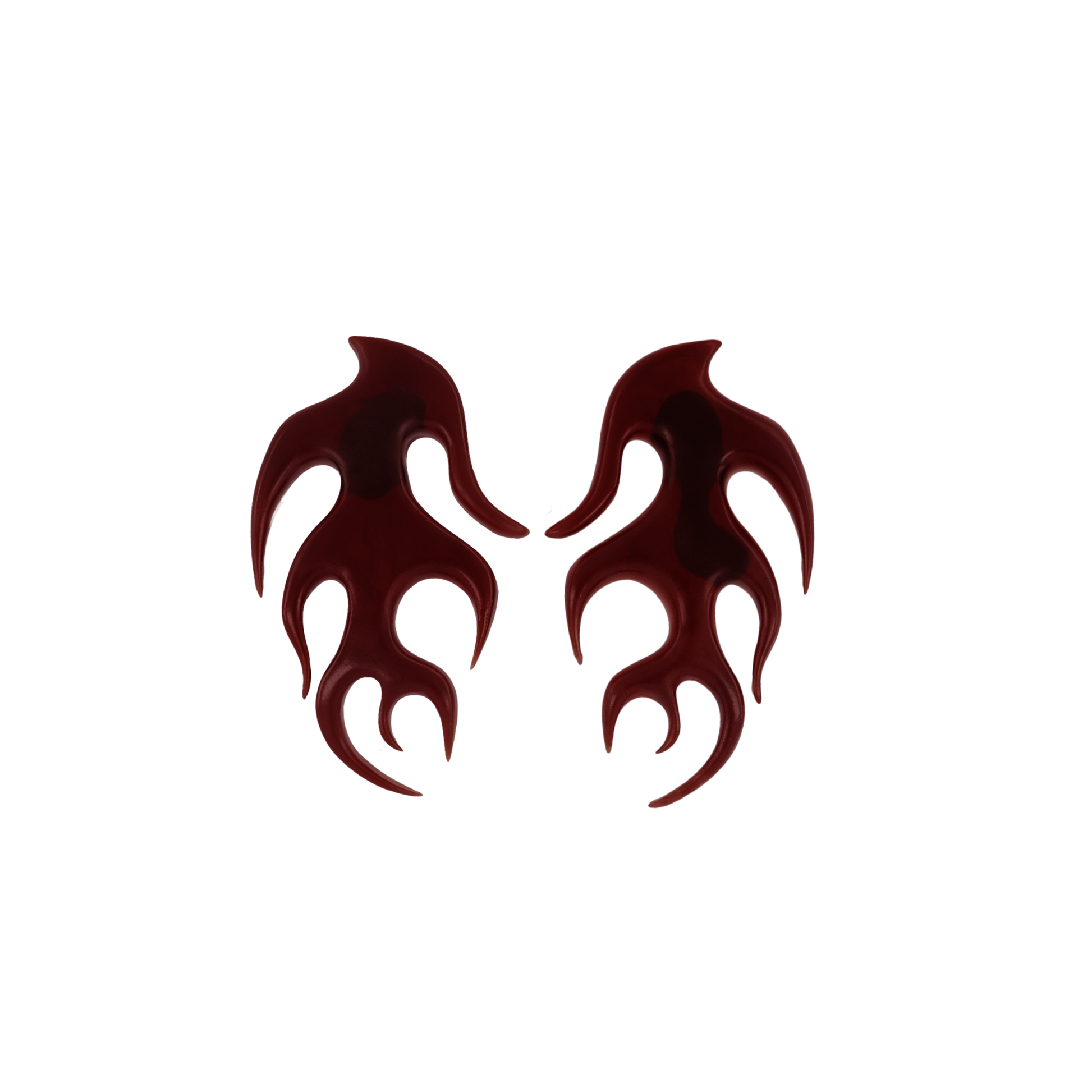 Boucles d'Oreille en forme de flammes, en résine organique sculptée à la main, attaches en argent en forme de goutte.