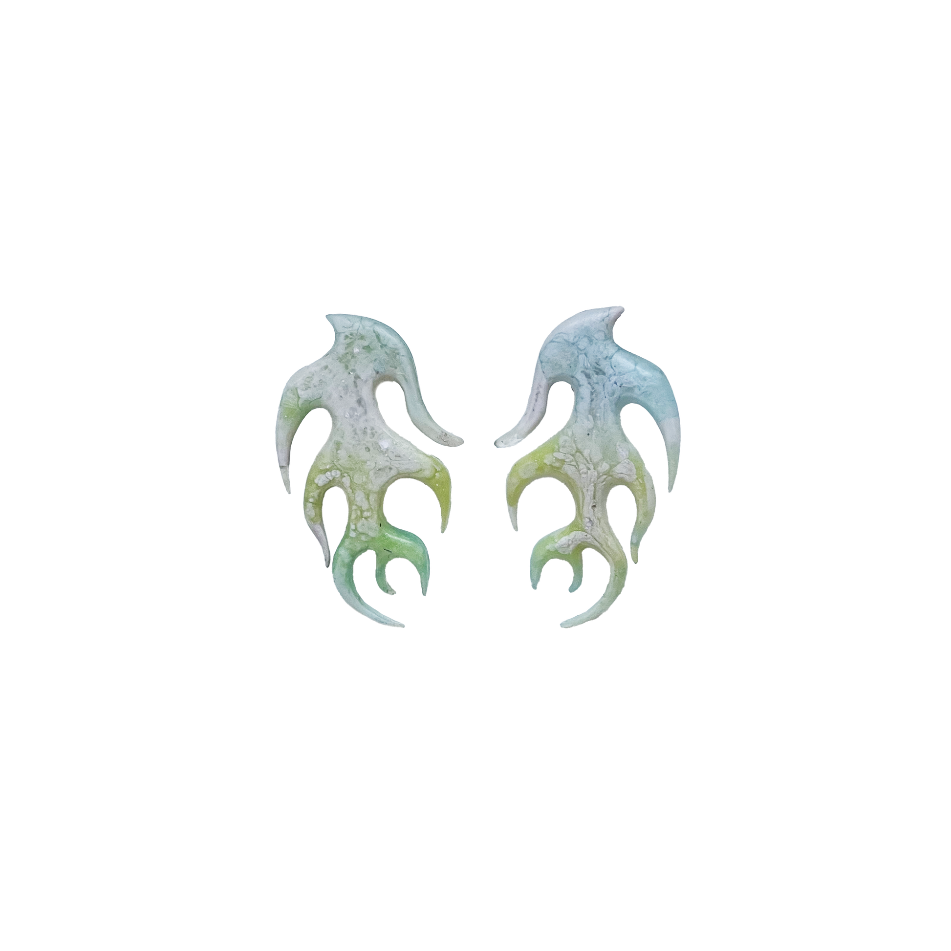 Boucles d'Oreille en forme de flammes, en résine sculptée à la main, attaches en argent en forme de goutte.