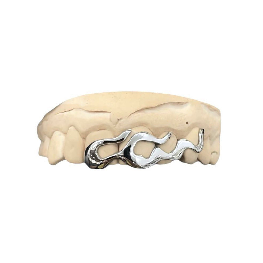 The metallic flame waves on your smile, perfectly executed by iconie artist Youth Grillz Paris