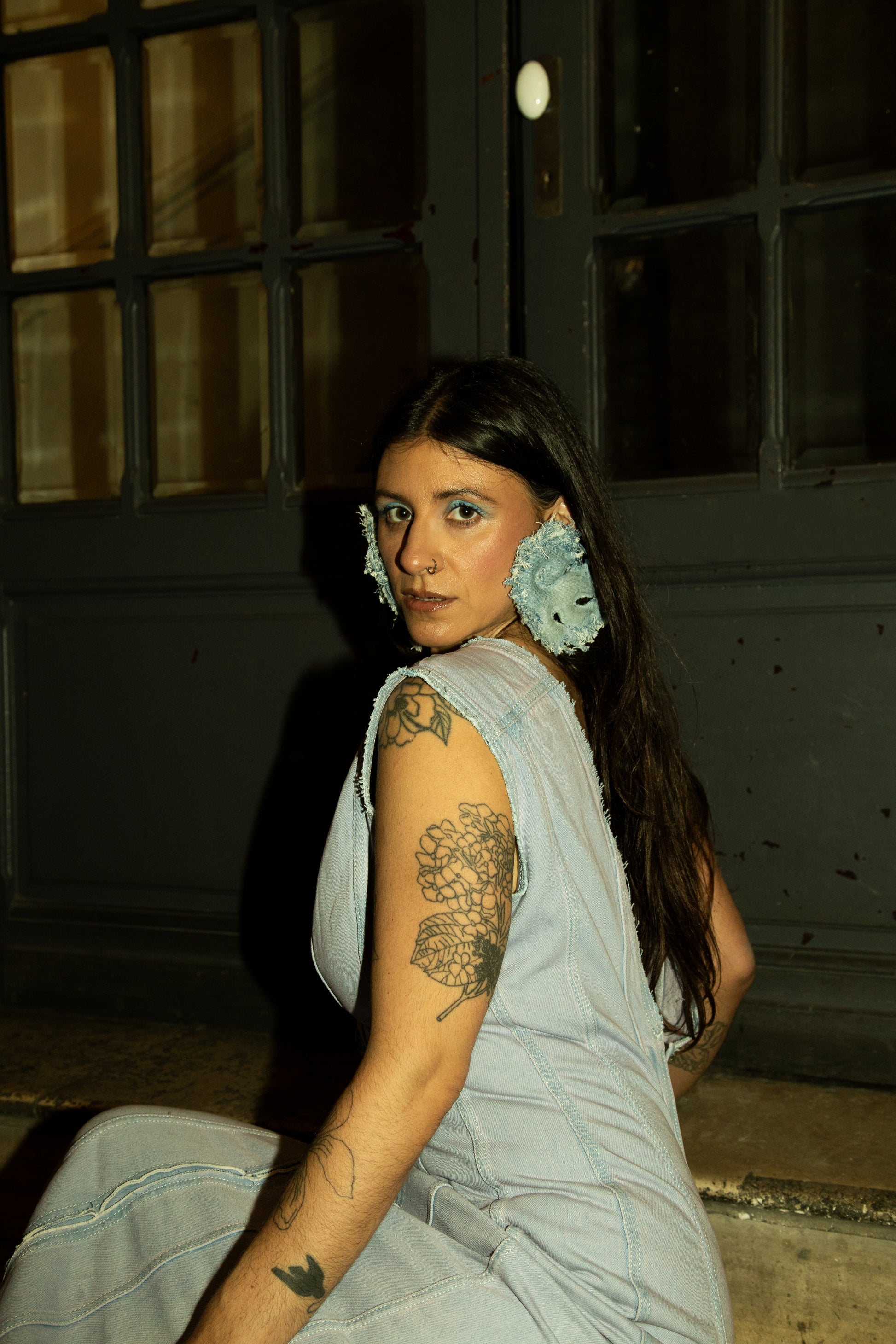 Upcycled Trinity Earrings in pair, in Bioresin and silver, covered in slender Denim